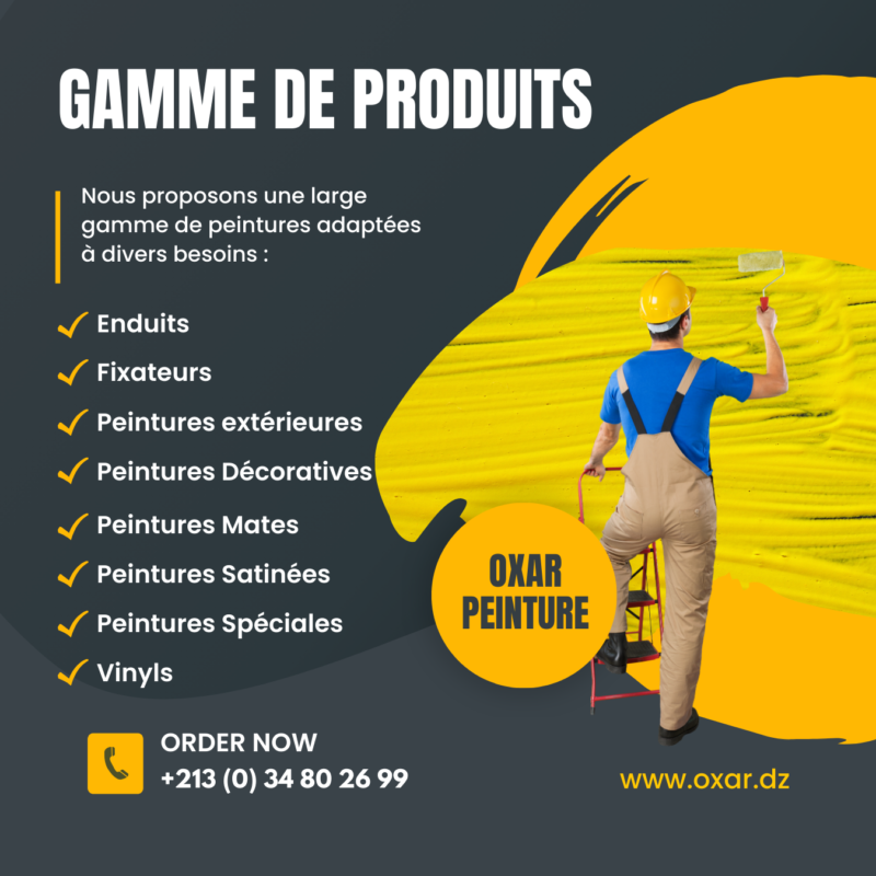 Avec plus de 16 ans d'expérience sur le marché algérien, notre entreprise offre une large sélection de peintures et revêtements de qualité pour répondre à tous vos besoins. Que vous soyez un